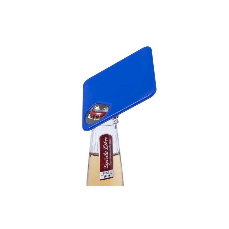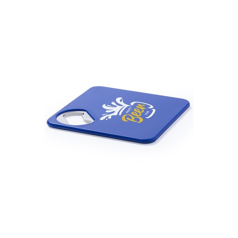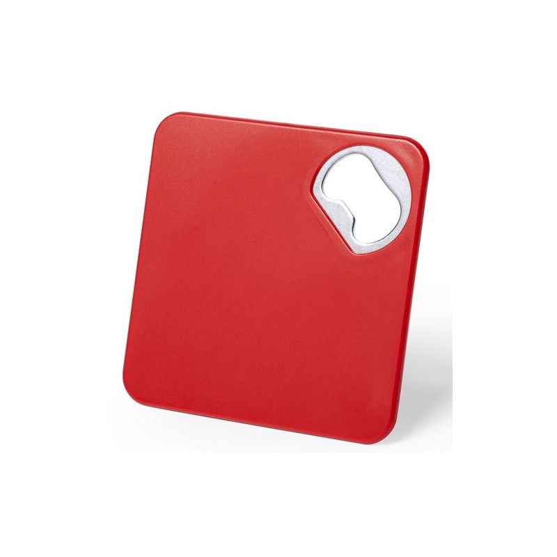 Original posavasos con abridor metálico integrado en variada gama de vivos colores. Con superficie anti deslizante en la base.
