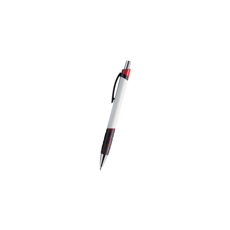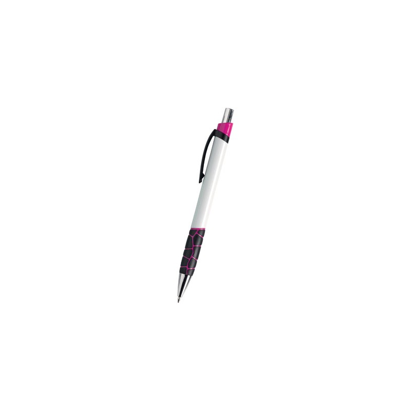 Bolígrafo de plástico con un diseño original combinado en 5 colores, azul, amarillo, verde, rojo y fucsia. Consulta personalización.