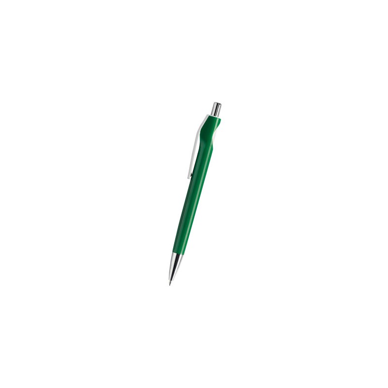 Bolígrafo de plástico con terminaciones cromadas. Disponible en 6 colores, fucsia, negro, verde, rojo, azul o naranja.