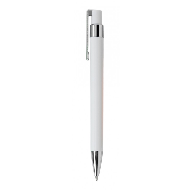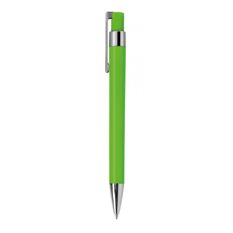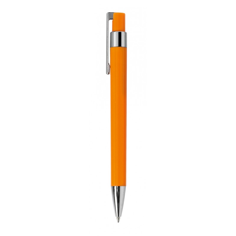 BOLÍGRAFO DE PLÁSTICO EN 6 COLORES, NARANJA, ROJO, AZUL, VERDE, BLANCO O NEGRO. TERMINACIONES CROMADAS. CONSULTE PRECIO PERSONALIZACIÓN.