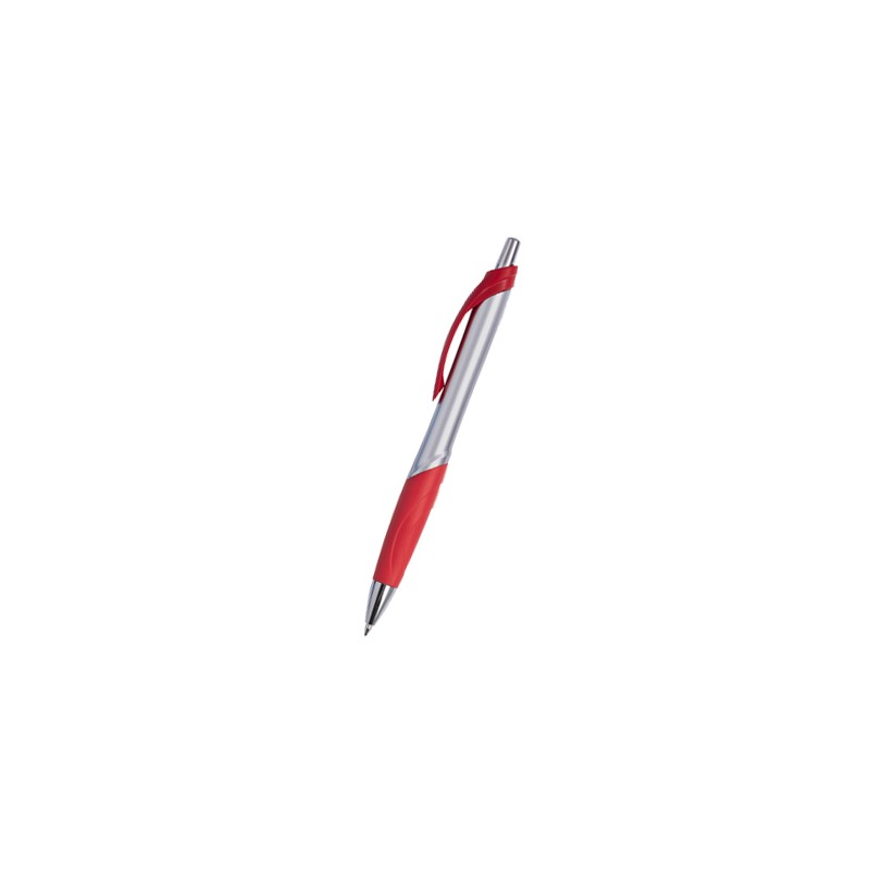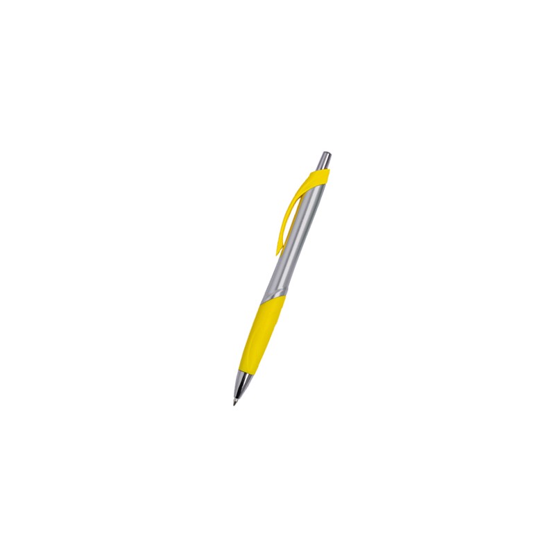 BOLÍGRAFO DE PLÁSTICO Y CLIP METAL CON CUERPO PLATA COMBINADO EN 4 COLORES, AMRILLO, ROJO, AZUL, VERDE O NEGRO.