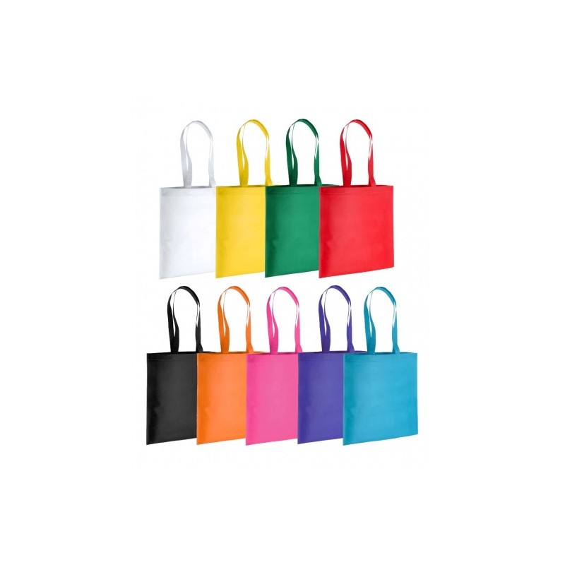Bolsa en non-woven de 80g/m2, en variada gama de vivos colores. Con asas largas de 68cm y acabado termosellado. Resistencia hasta 5kg de peso.