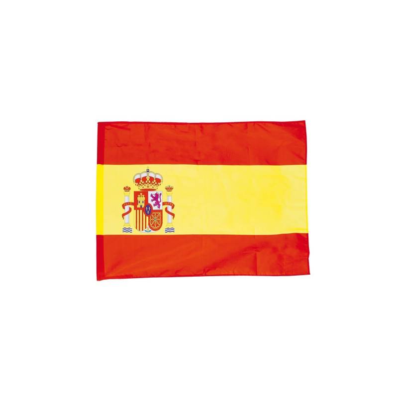 Bandera de España con escudo constitucional en suave y resistente poliéster con cintas de ajuste.
