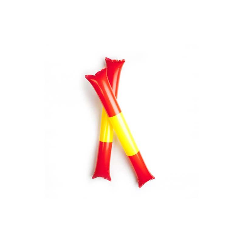 Par de bastones sticks/aplaudidores en resistente y ruidoso material LDPE de diseño España. Reutilizables y con válvula de inflado incluida.