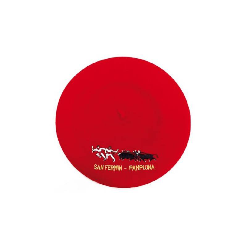 Boina txapela bordada modelo encierro. Vuelo 28 cm. Color rojo. Talla única.