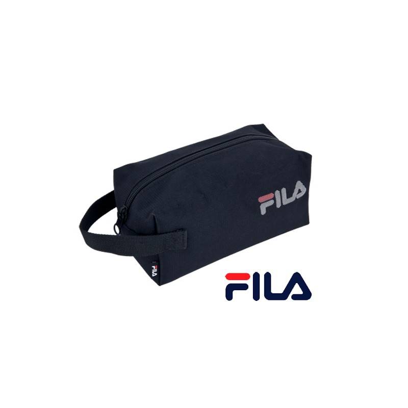 Estuche neceser multiusos de Fila de diseño urbano en suave y resistente poliéster. Bolsillo principal con cierre de cremallera, asa de transporte y etiqueta en lateral con logotipo de la marca.