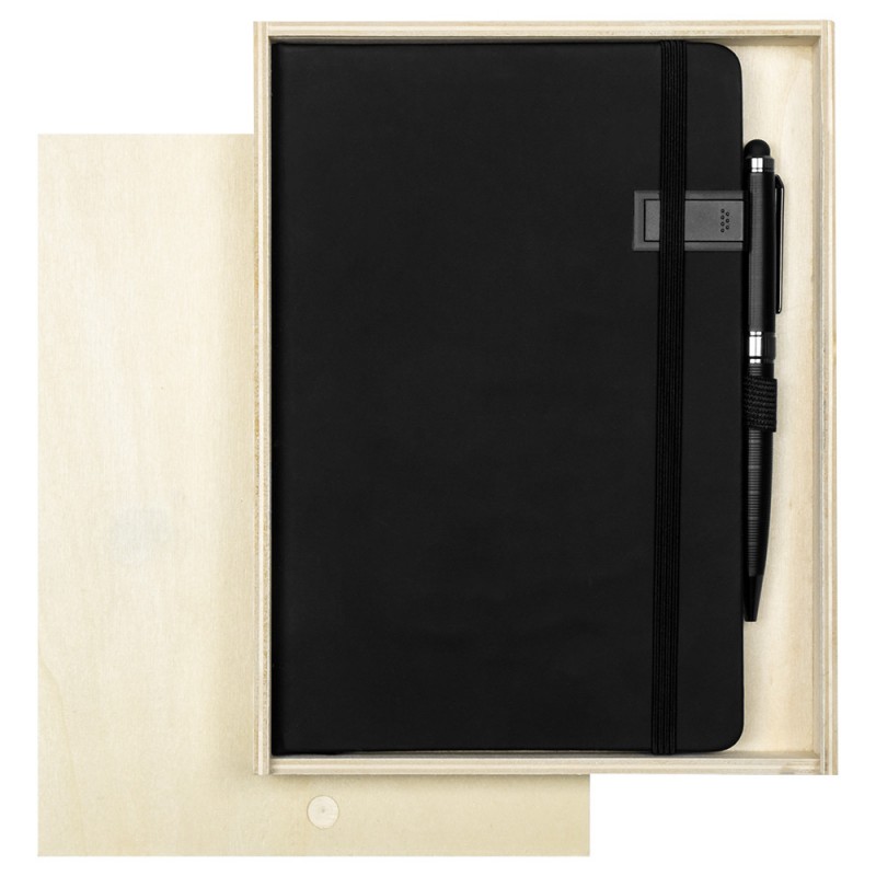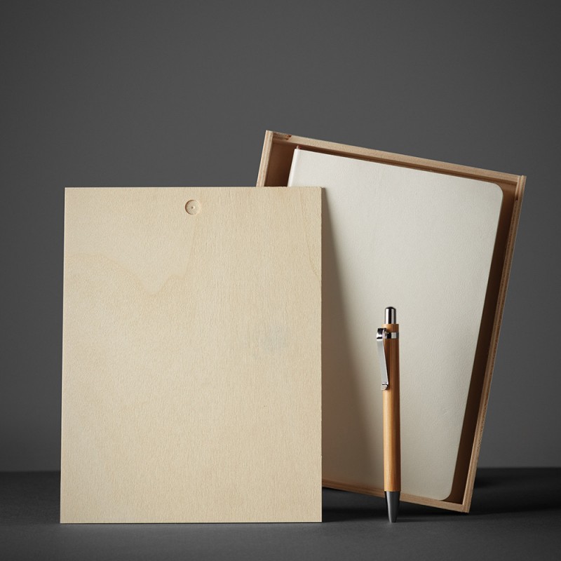 Caja Fabricada en MDF para presentación de regalos, con capacidad para una libreta A5 y un bolígrafo.