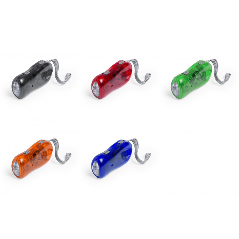 Linterna de 3 ledes de carga manual con cuerpo en acabado translúcido de variados colores. Con cinta de transporte y presentada en caja individual.