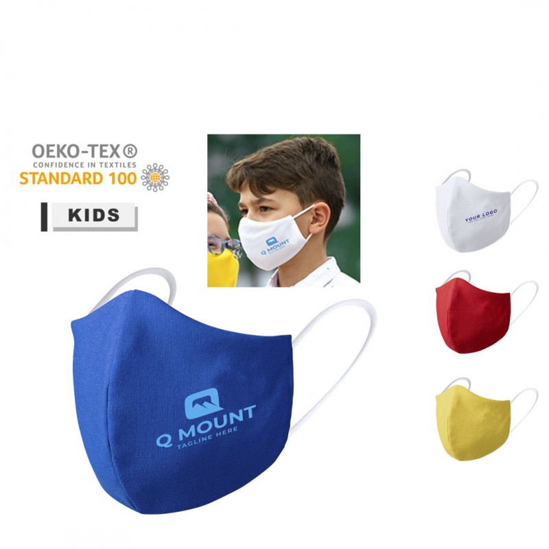 Mascarilla higiénica reutilizable para niño. Fabricada en algodón y poliéster de doble capa, con costura frontal ergonómica para un cómodo ajuste y confortables cintas elásticas para las orejas en tejido hipoalergénico, con certificación OEKO-TEX Clase I.