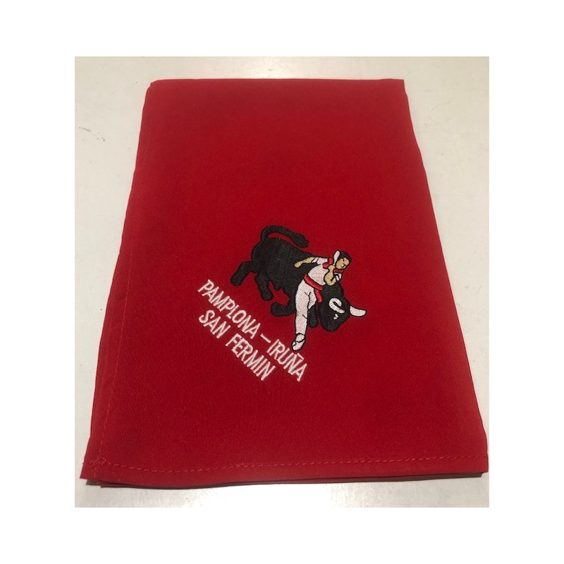 Pañuelo de Crespón rojo de 50 x 50 cm. y terminación en pespunte ancho. De tacto agradable y con diferentes bordados a elegir. Se presentan en bolsa individual de celofán transparente.