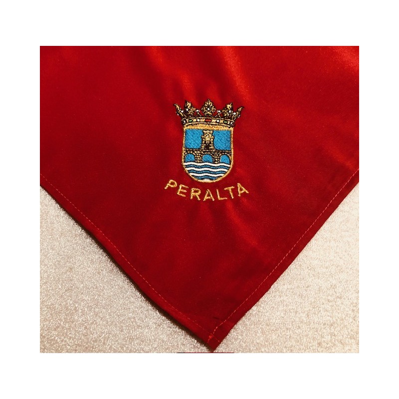 Pañuelo de crespón rojo de calidad, bordado con el escudo de PERALTA.
