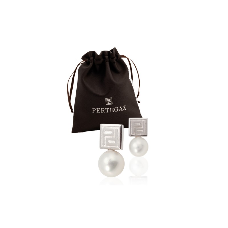 Pendientes de Pertegaz en metal lacado de acabado plateado con perlas de cristal. Presentados en bolsita individual de polipiel.