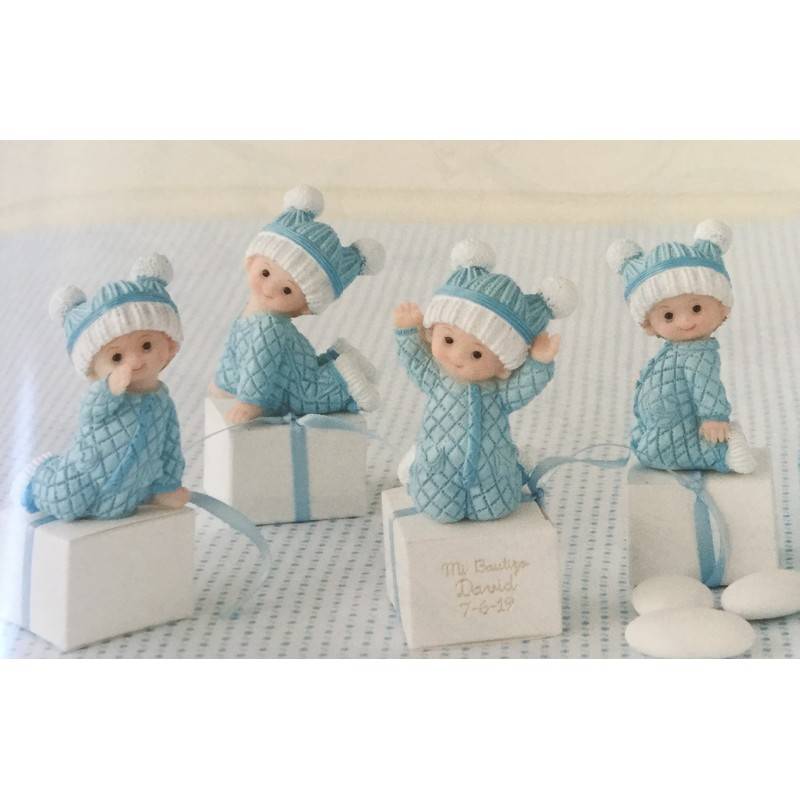 Figura resina niño con cajita que incluye 3 peladillas de chocolate. 4 modelos que se venden surtidos. Mínimo de compra 4 unidades y para el resto múltiplos de 4.