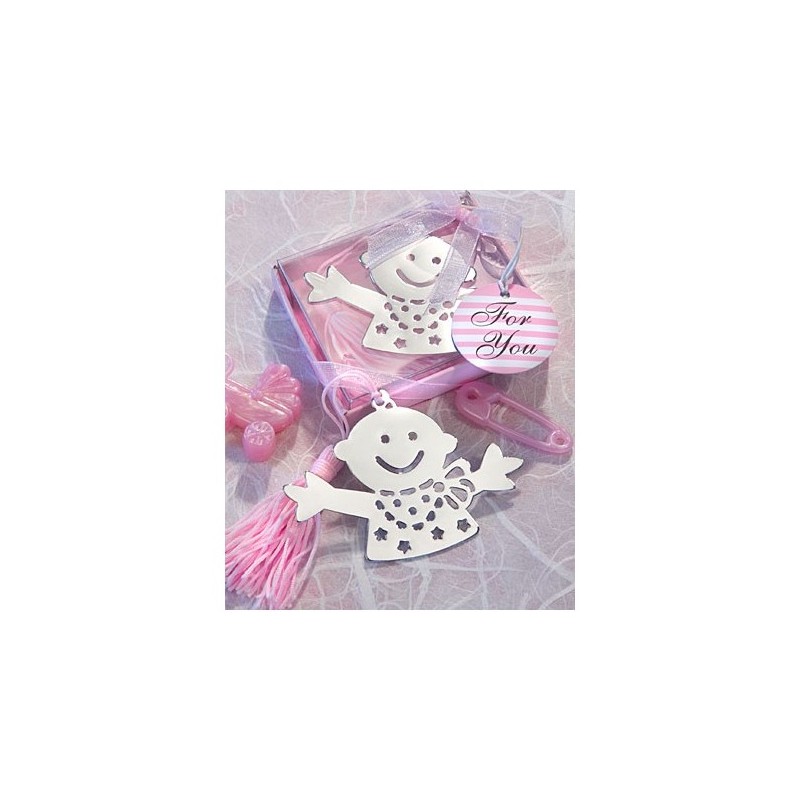 Simpático Punto de Libro Baby con borla Azul, en cajita individual de regalo.