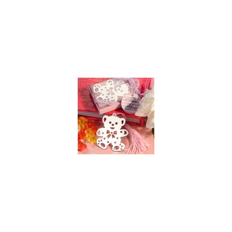 Simpático Punto de Libro de osito con borla rosa, en cajita individual de regalo.