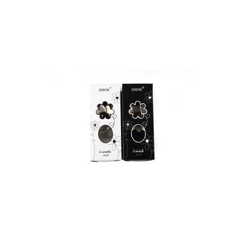 Difusor Ambientador de 30ml. presentado en cajita. Se sirve surtido en dos aromas, lavanda y sándalo.
