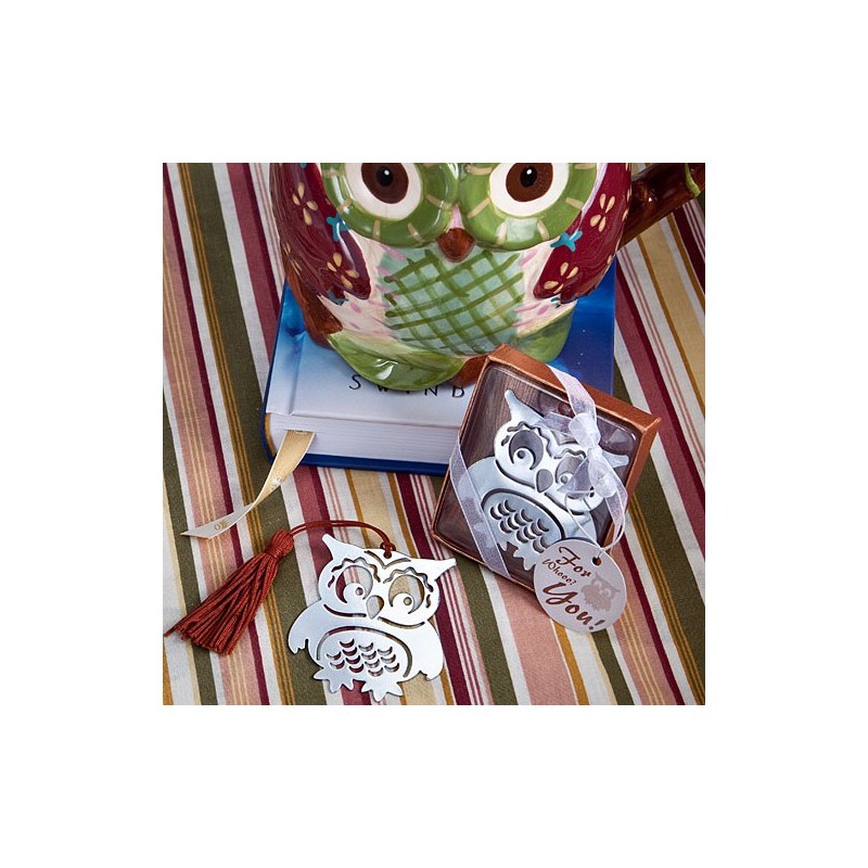 Perfecto punto de libro con forma de búho, presentado en caja de regalo, lazo de organza blanco y targeta "For You"