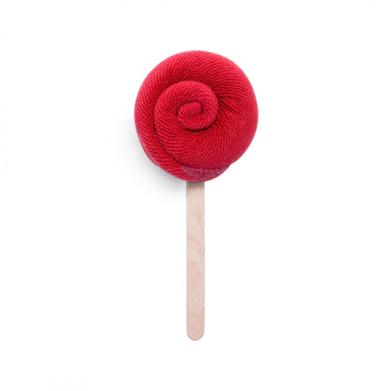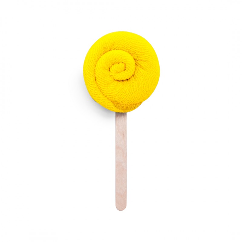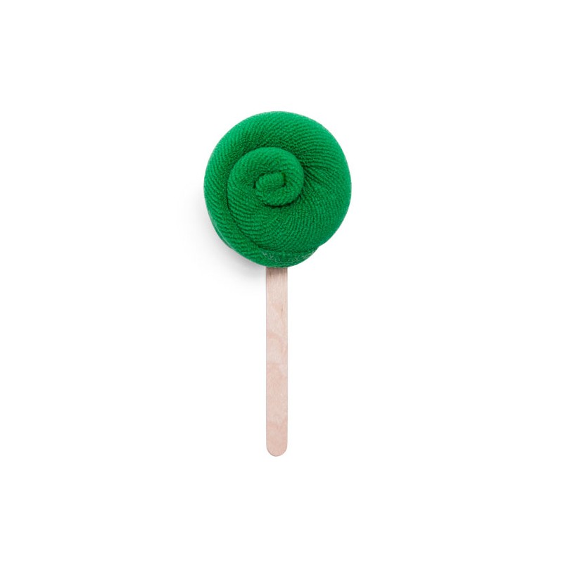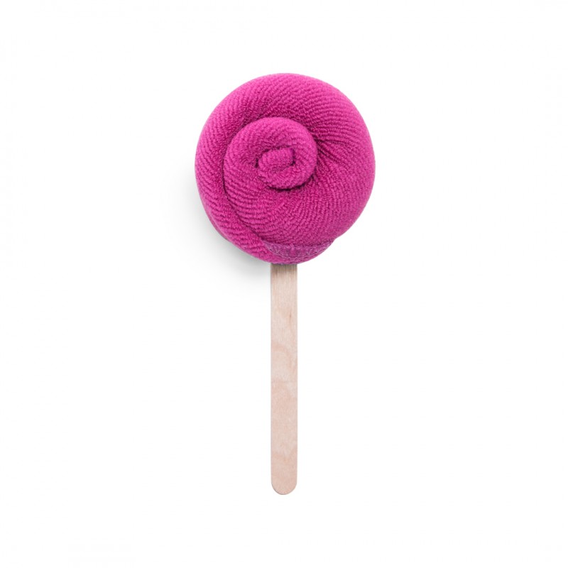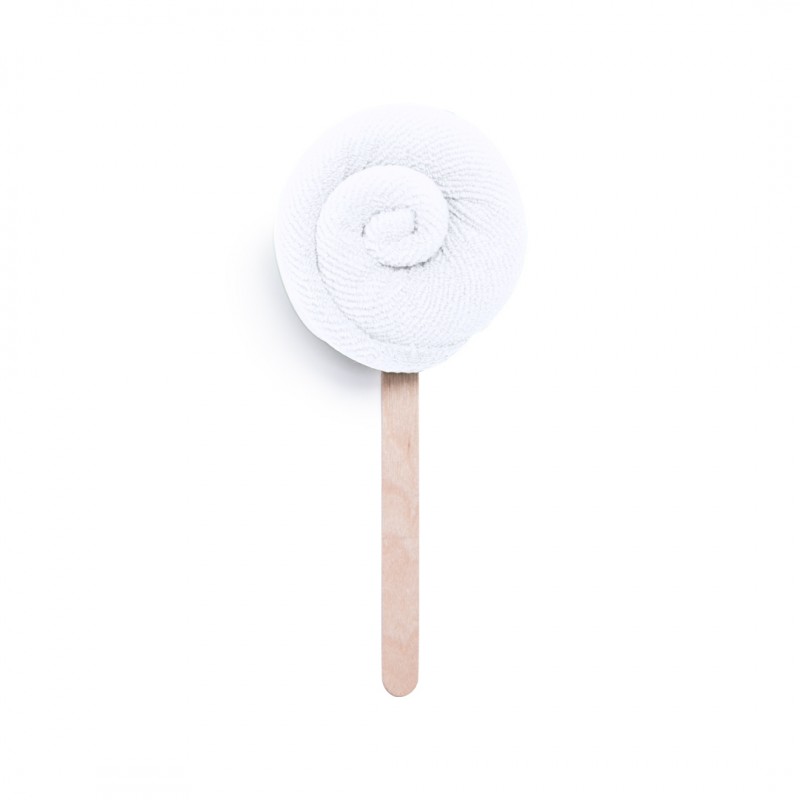 Divertida toalla con forma de piruleta, en absorbente y suave tejido de 260g/m2 en vivos colores, con palito de madera.
