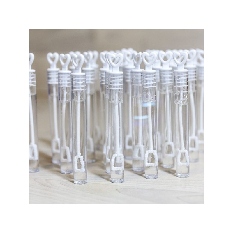 Lotes de 24 pequeños pomperos de jabón en forma de corazón.