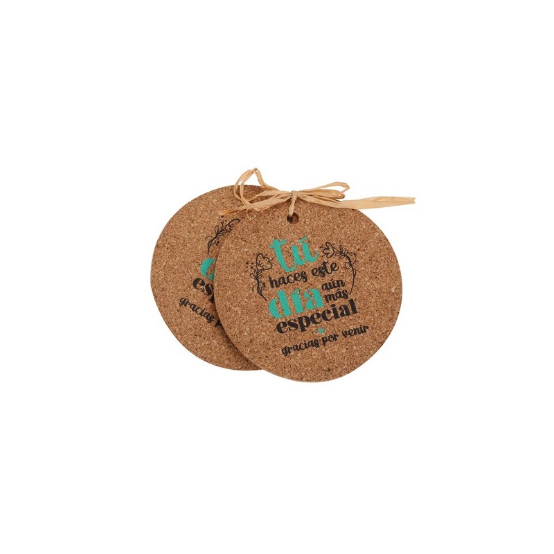 Lote de 2 posavasos de corcho con frase de agradecimiento. Un detalle único y práctico.