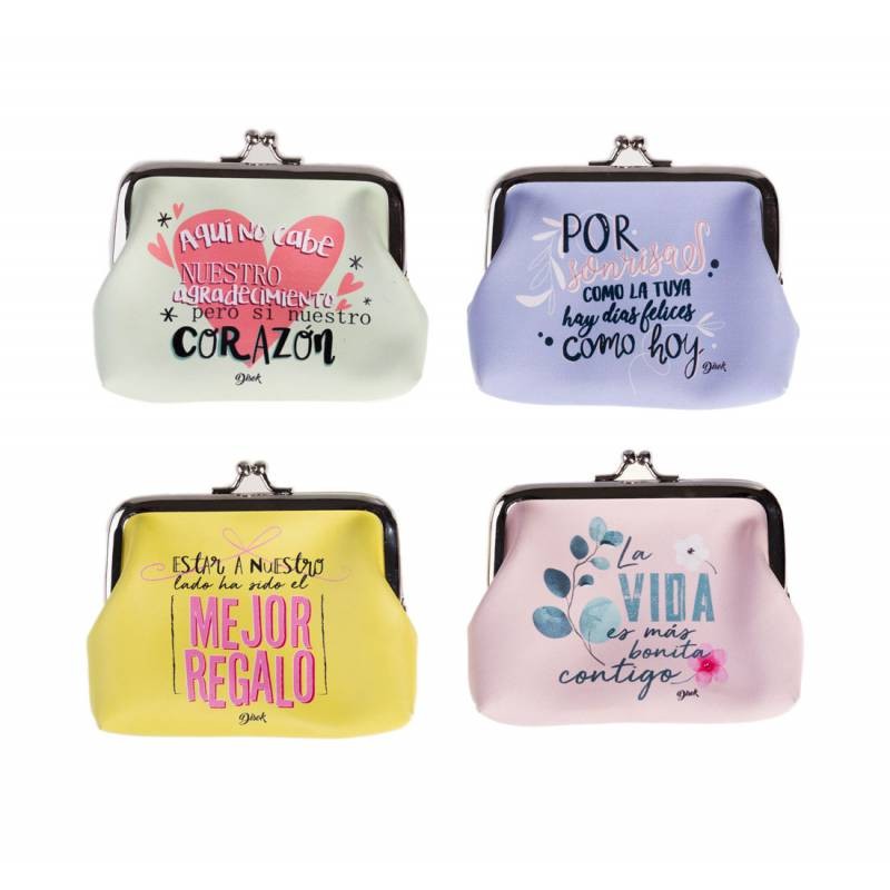 Nuevo monedero con un surtido de cuatro frases positivas de agradecimiento. Precio unitario.