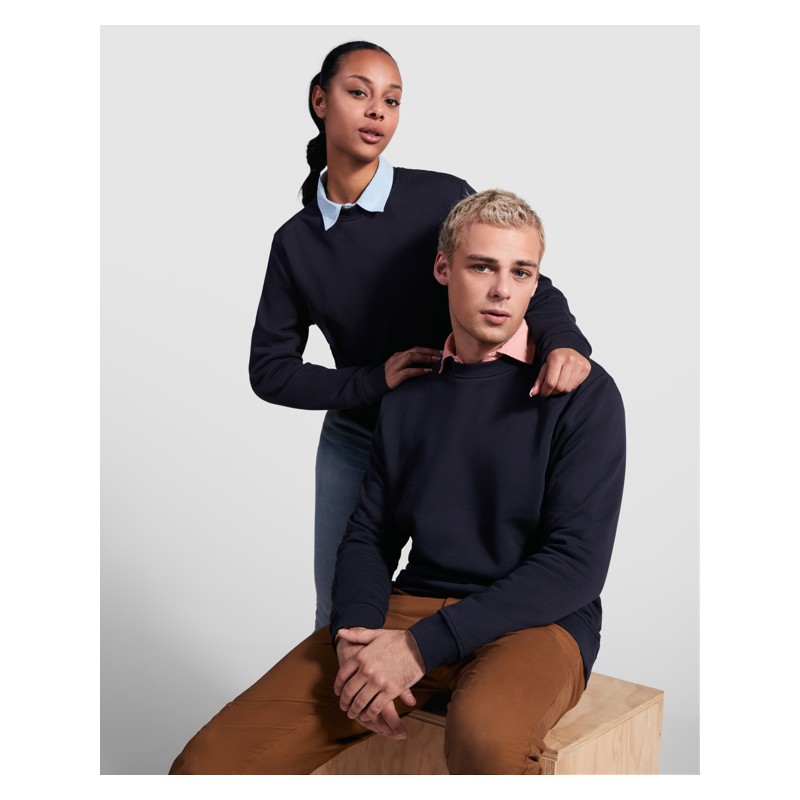 Sudadera de algodón con diseño clásico. Cuellos, puños y bajo con canalé 1x1. Cubrecosturas reforzado en el interior del cuello.