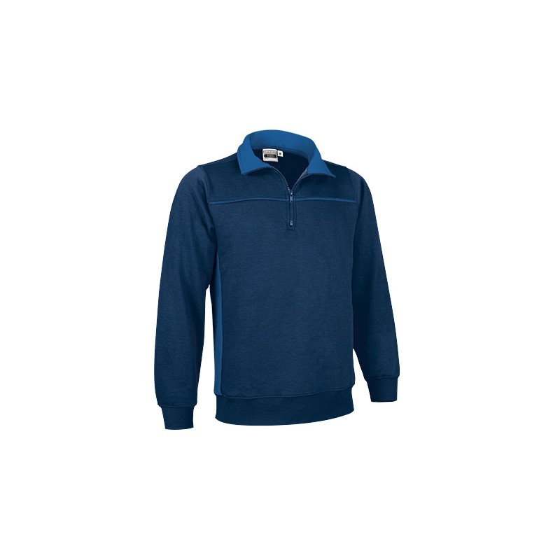 Sudadera de tacto suave y agradable con diseño moderno en colores combinados, confeccionada en tejido de felpa, perchado en interior. Ideal para vestir sobre otra prenda. Cuello alto con cremallera corta desde medio pecho. Puños y bajo de canalé para un mejor ajuste de la prenda al cuerpo. Doble pespunte en hombros, sisas, puños y bajo. Base en colores neutros con zonas en colores llamativos a contraste: interior del cuello, bandas anchas en los laterales y vivos en pecho delantero. Incluye un bolsillo suelto para coser en el pecho.
